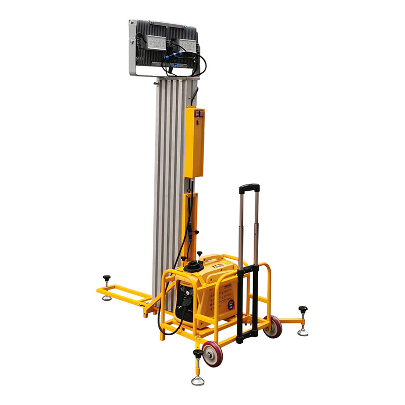 3. 升降平臺采用電動推桿升降方式,一鍵控制升降及任意高度懸停,滿足現(xiàn)場指揮操作的方便性;最高升起高度可達5.2米,燈頭可上下0~135°范圍內(nèi)翻轉(zhuǎn)調(diào)節(jié)照射角度。