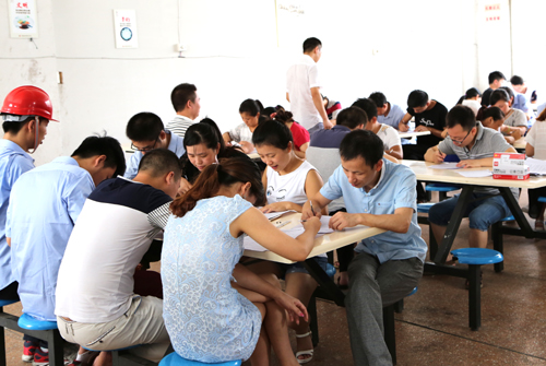 講解完后發(fā)了知識(shí)培訓(xùn)考試卷,并要求必須百分百的通過考核�,F(xiàn)場(chǎng)大家都很認(rèn)真,最后都滿分通過考核。