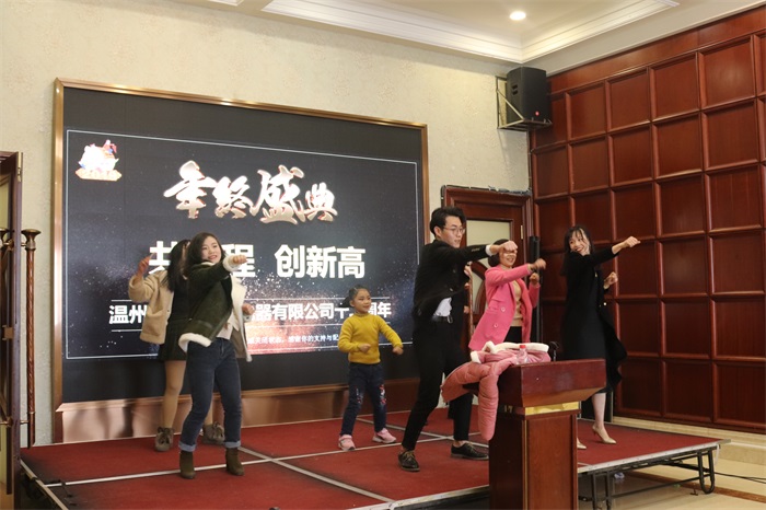 大會結(jié)束后,6點(diǎn)整喜迎分歲宴,歡喜迎新年!由市場部及采購部員工擔(dān)綱主持。晚宴開始前,由表演者:詹貽旺 黃四嬌 姚小敏 饒秋華 覃思慧 滿益倩帶來開場舞蹈“抓錢兔子舞”,為晚宴拉開了序幕。彭斌總經(jīng)理、詹百根副總經(jīng)理、車、沖床車間劉茂軍、注塑車間劉慶為我們的表演者送上鴻運(yùn)當(dāng)頭獎(jiǎng)。并為晚宴送上了第一杯祝酒。