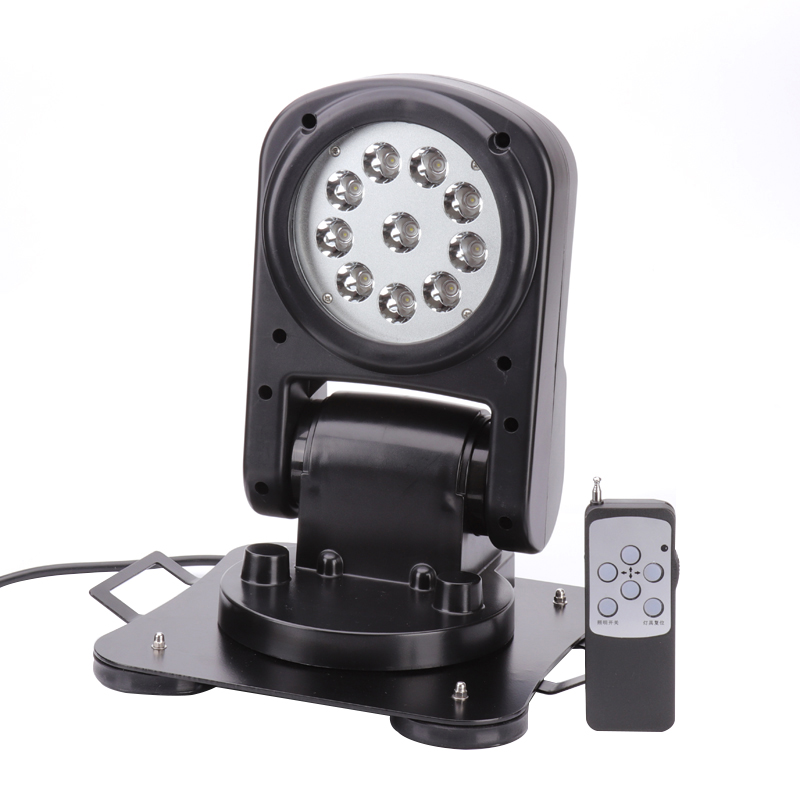 2. 采用品牌30W LED光源,鋁車制反光杯精配聚光,照明亮度高,照射距離可達(dá)800米,通過遙控器操作,燈頭可實現(xiàn)上下180度、左右360度全方位無死角搜索照明功能。